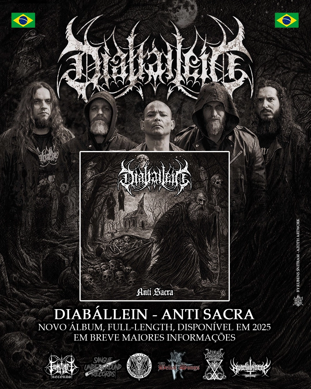 Paralelamente, o DIABÁLLEIN será destaque na próxima edição do programa Extremo Black Metal Underground, transmitido pelo conceituado canal brasileiro Na Lâmina da Foice. A exibição acontece no domingo, 27 de abril, às 20h, e contará com uma entrevista exclusiva com a banda, além de uma resenha aprofundada de “Anti Sacra”.