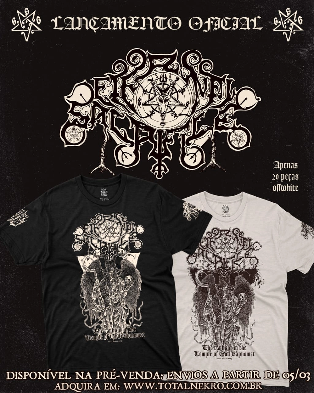 - Camisetas oficial (preta – manga curta) – R$ 90,00 (+ frete): https://www.totalnekro.com.br/eternal-sacrifice-the-twilight-in-the-temple-of-god-baphomet-camiseta-oficial-pre-venda/p