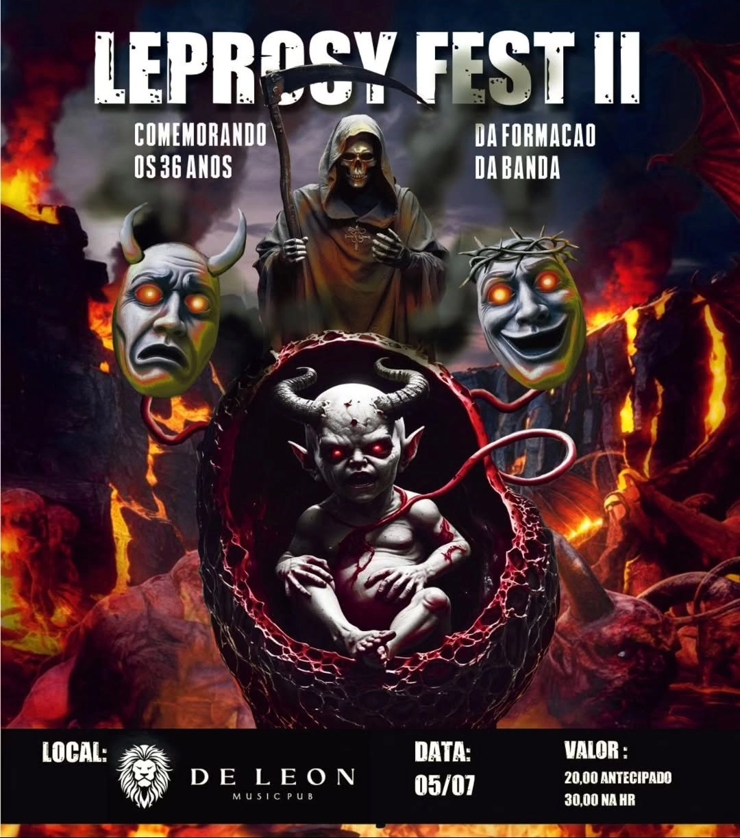 A lenda do Death Metal goiano, LEPROSY, acaba de anunciar oficialmente a segunda edição do aguardado ‘Leprosy Fest’, evento que celebrará os 36 anos da fundação da banda.