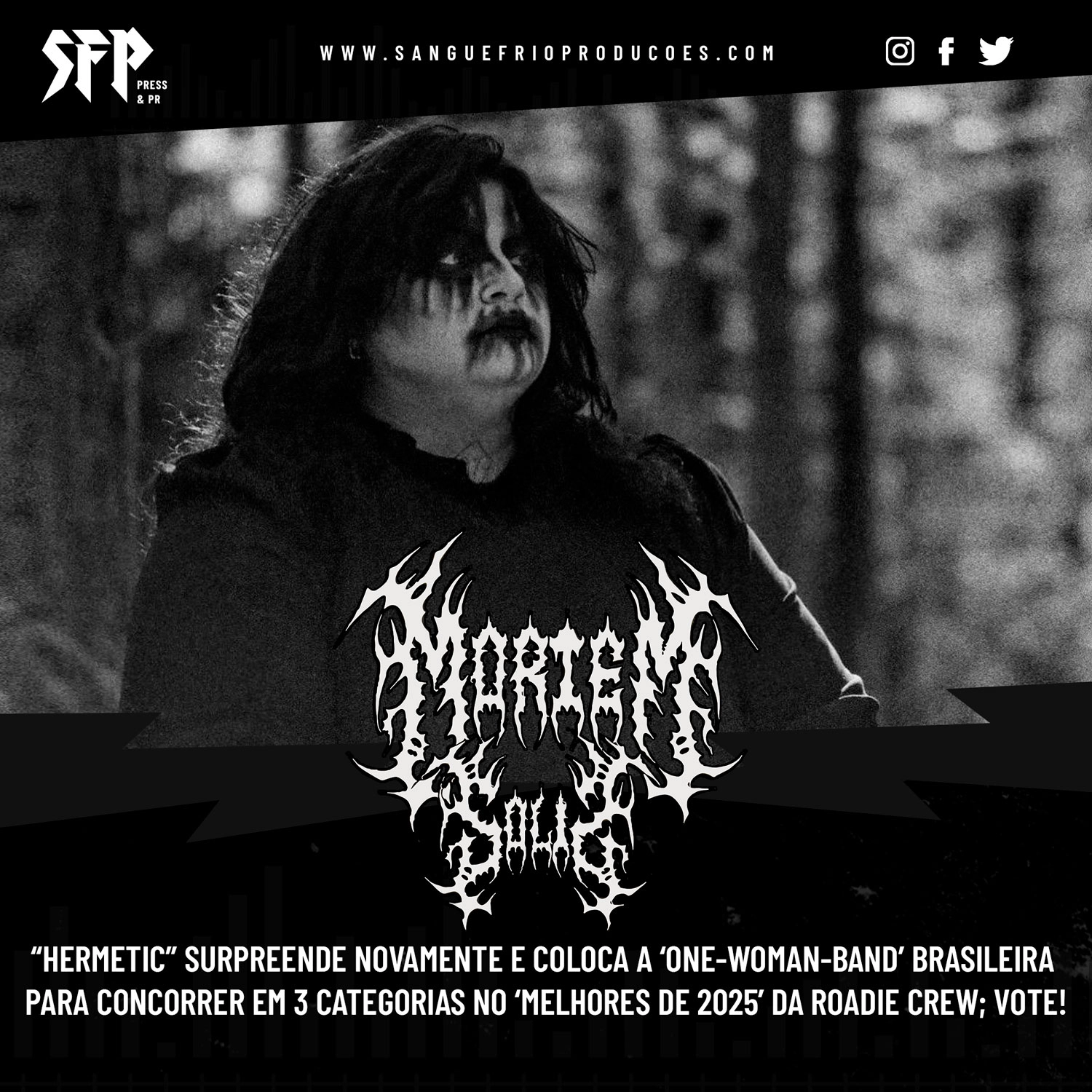 O álbum de estreia da MORTEM SOLIS, intitulado “Hermetic”, reafirma seu impacto no underground nacional ao figurar em três categorias centrais da tradicional votação popular ‘Melhores de 2025’, realizada pela revista Roadie Crew.