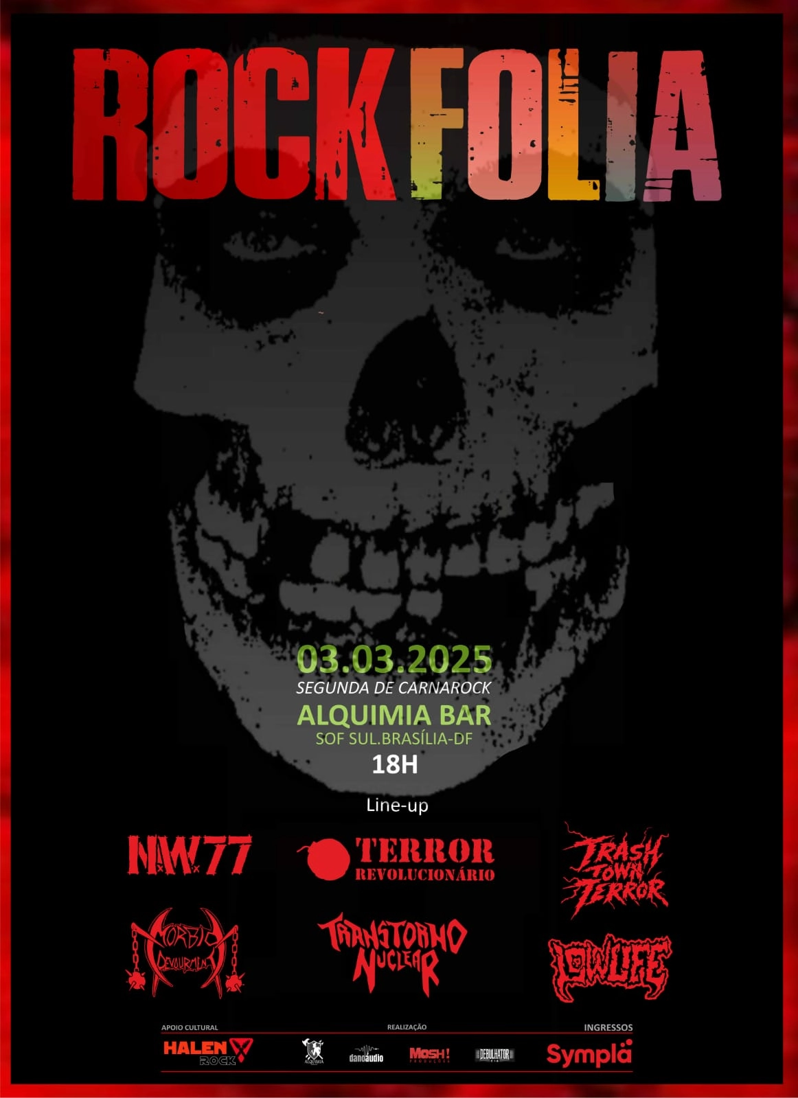 A segunda-feira do festival será dedicada ao HC/Crossover, trazendo um line-up insano para os amantes das vertentes mais agressivas do Rock. Além do N.W. 77, a programação contará com Trash Town Terror, Low Life, Terror Revolucionário, Transtorno Nuclear e Morbid Devourment. A noite promete muito mosh e energia em um ambiente propício para quem quer fugir das tradicionais marchinhas e garantir uma experiência intensa durante o feriado. O Rock Folia 2025 não se limita apenas às apresentações das bandas. O festival ainda contará com DJ’s, expositores e promoções especiais, além de premiações para as melhores fantasias, garantindo uma interação diferenciada entre o público e o evento.