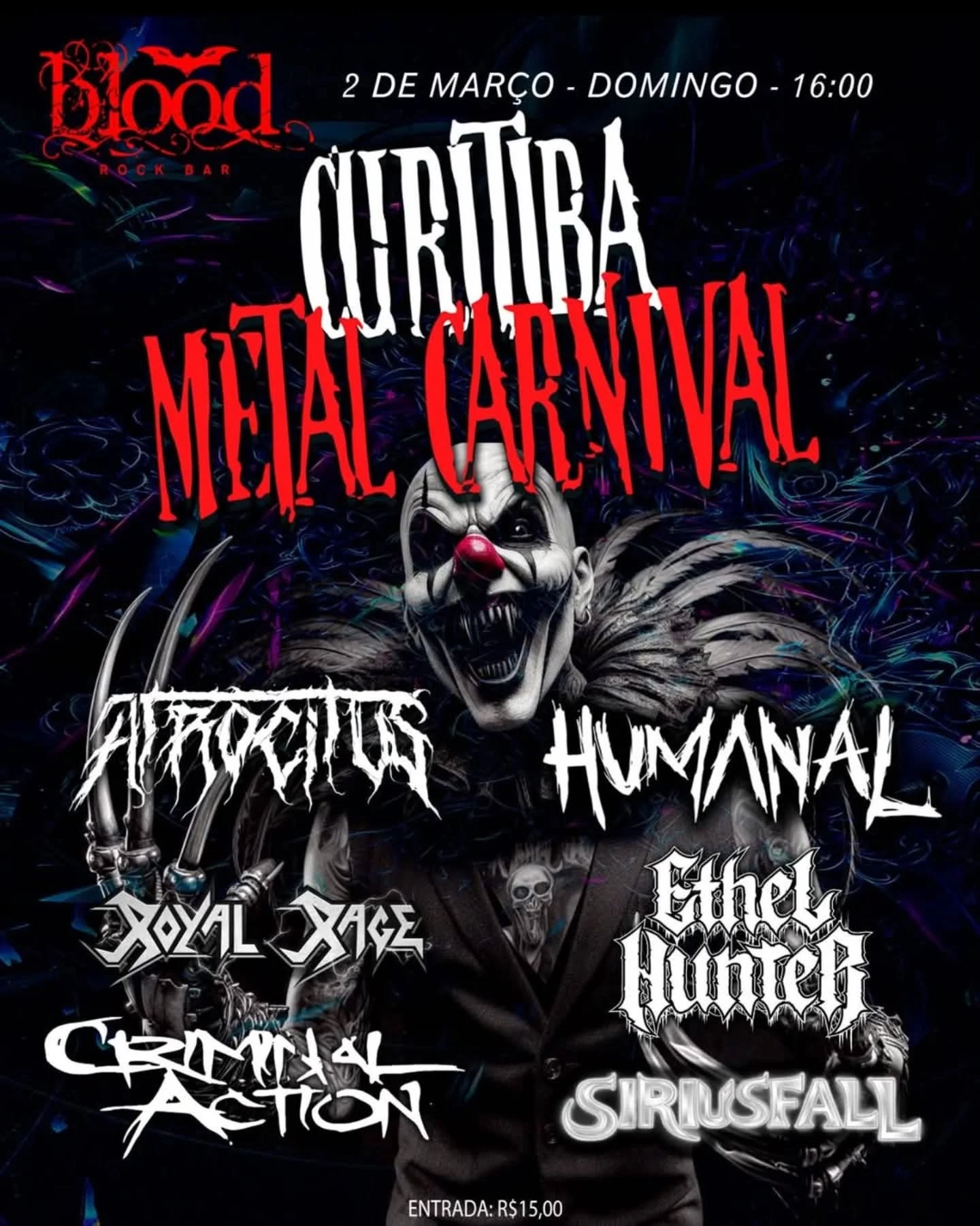 O evento Curitiba Metal Carnival terá início às 16h e contará com um line-up de peso, do Hard Rock ao Death Metal, incluindo Atrocitus, Humanal, Ethel Hunter, Criminal Action e Siriusfall, além do ROYAL RAGE. Os ingressos estarão disponíveis por R$ 15,00, um valor acessível para os fãs que desejam conferir de perto as performances das bandas.