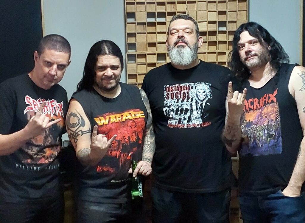 Sacrifix – Conhecida por sua pegada visceral e fidelidade ao Thrash Metal Old School, a banda paulistana se consolidou como um dos nomes mais intensos e autênticos da cena Thrash atual. Inspirado por lendas como Slayer, Exodus, Destruction e Kreator, o Sacrifix mantém viva a essência clássica do gênero, entregando músicas brutais, rápidas e repletas de agressividade. Com uma formação extremamente competente, composta por Frank Gasparotto (vocal/guitarra), Diego Domingos (guitarra), Filippe Tonini (baixo) e Fábio Moysés (bateria), a banda possui em seu currículo os aclamados álbuns e EPs: “World Decay 19” (Álbum, 2021), “The Limit Of Thrash” (EP, 2022), “Killing Machine” (Álbum, 2022), e em breve reafirmará sua força com o lançamento de seu mais recente EP, intitulado “Let’s Thrash”.