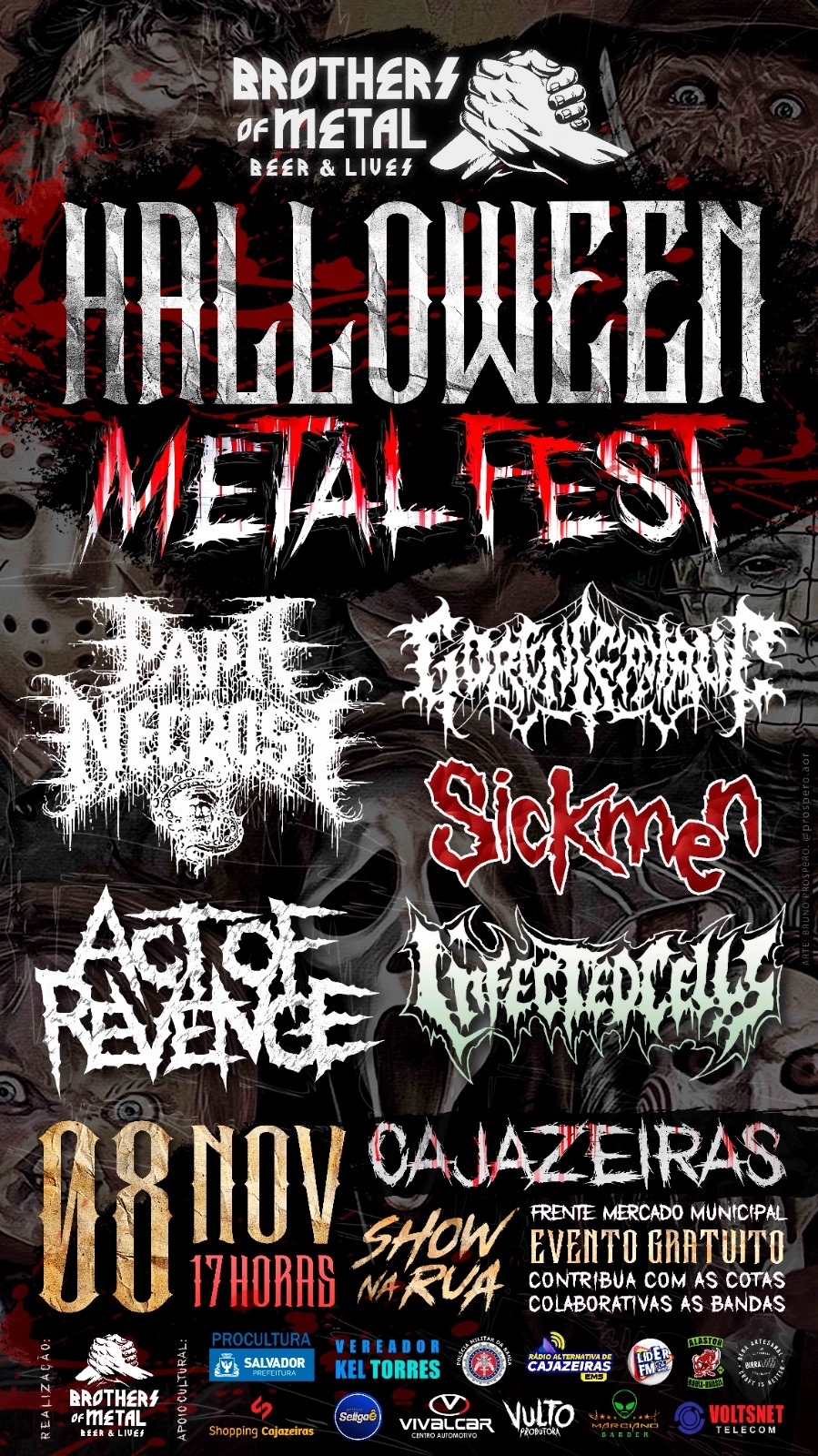 A iniciativa de realizar o festival em via pública, com entrada franca, reforça o compromisso de democratizar o acesso à cultura e fortalecer a cena local. O grupo dividirá o palco com nomes como Act Of Revenge, Infected Cells, Papa Necrose e Sickmen, garantindo uma noite de extrema brutalidade. Confira abaixo o cartaz e o serviço completo para mais informações: