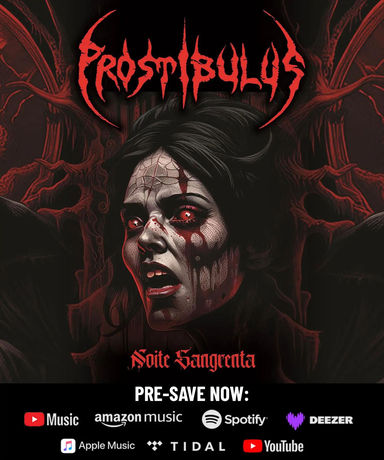 A banda de Death Metal PROSTIBULUS anunciou a data de lançamento de seu aguardado novo single, “Noite Sangrenta”. A faixa chega oficialmente a todas as principais plataformas de streaming e download no próximo dia 7 de março de 2025, via Sangue Frio Records.