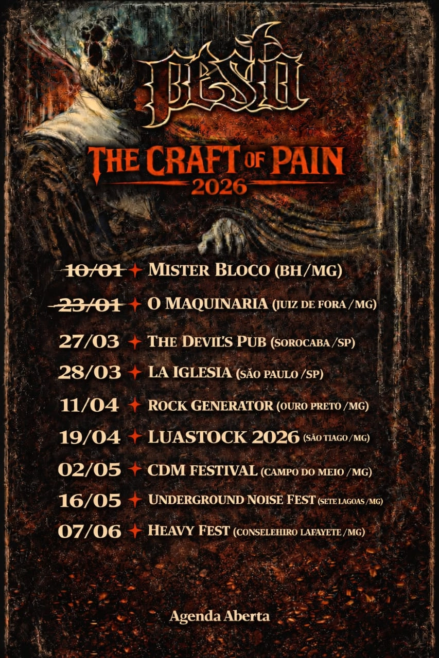 A banda mineira Pesta confirmou duas apresentações em março, nas cidades de Sorocaba/SP e São Paulo/SP, como parte da “The Craft of Pain Tour 2026”, turnê que divulga seu trabalho mais recente.