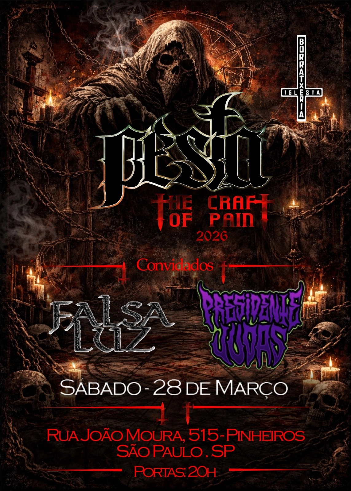 Já no dia 28 de março (sábado), o Pesta sobe ao palco do La Iglesia (Rua João Moura, 515 – Pinheiros – São Paulo/SP). A abertura será das bandas Falsa Luz e Presidente Judas. As portas abrem às 20h.