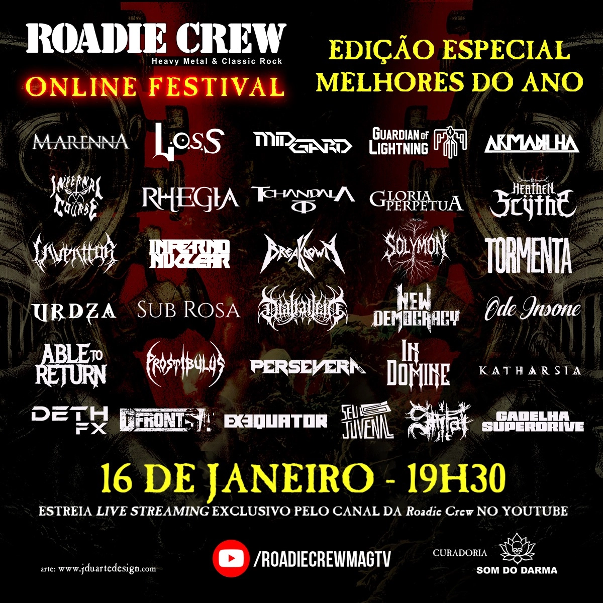 O evento online está programado para o próximo dia 16 de fevereiro de 2026 (sexta-feira) a partir das 19h e 30min no canal oficial da Roadie Crew no YouTube. Confira abaixo o cartaz e o serviço completo para mais informações: